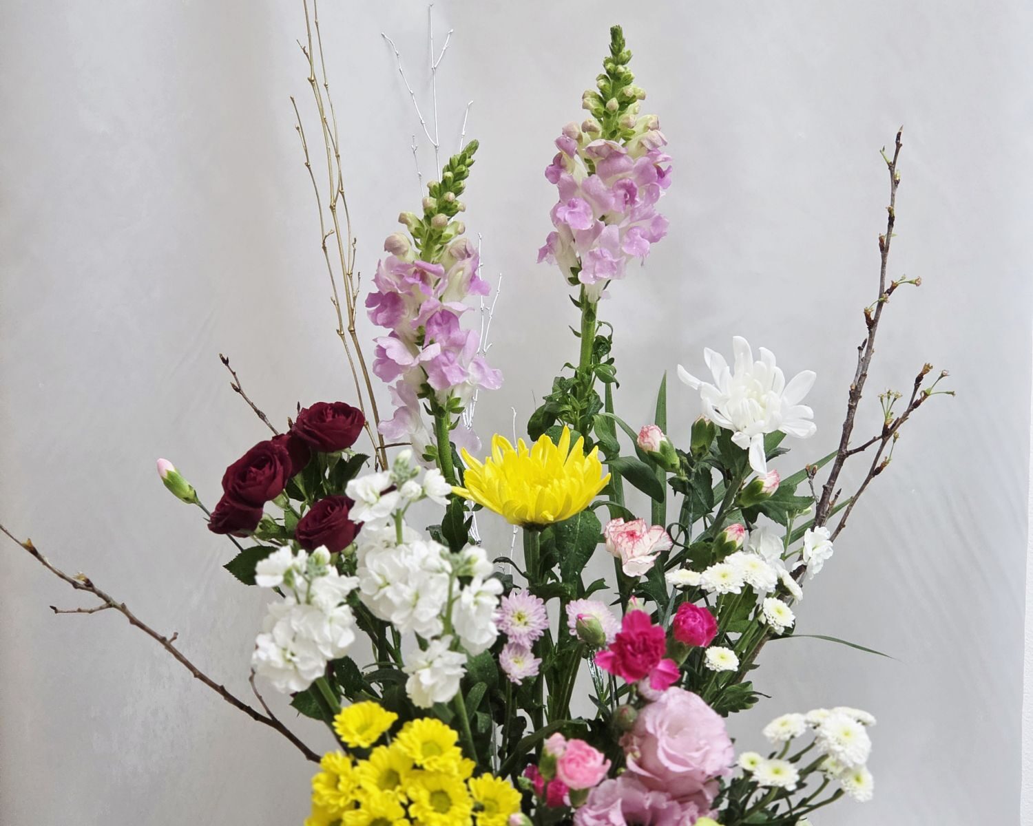 先週の子でまだ元気だった竜胆や枝物には再登場していただき。